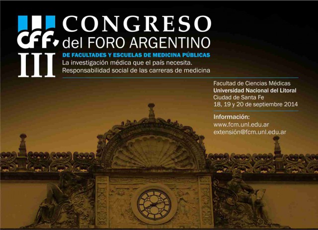 El 3º Congreso del Foro Argentino de Facultades y Escuelas Públicas de Medicina tendrá como anfitriona a la Facultad de Ciencias Médicas de la UNL. Bajo el lema “La investigación médica que el país necesita. La responsabilidad social de las carreras de medicina”, se llevará adelante los próximos 18, 19 y 20 de septiembre en El Paraninfo de la UNL.