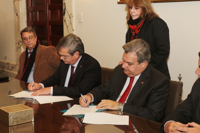 El rector de la UNL, Miguel Irigoyen; y el ministro de Gobierno y Reforma del Estado, Pablo Farías, firmaron un convenio de cooperación para el desarrollo de las prácticas académicas de los estudiantes de la Universidad. El acto se realizó este miercoles 22 de junio por la mañana en el despacho del rector, con la presencia de decanos y secretarios del Gabinete del Rector.